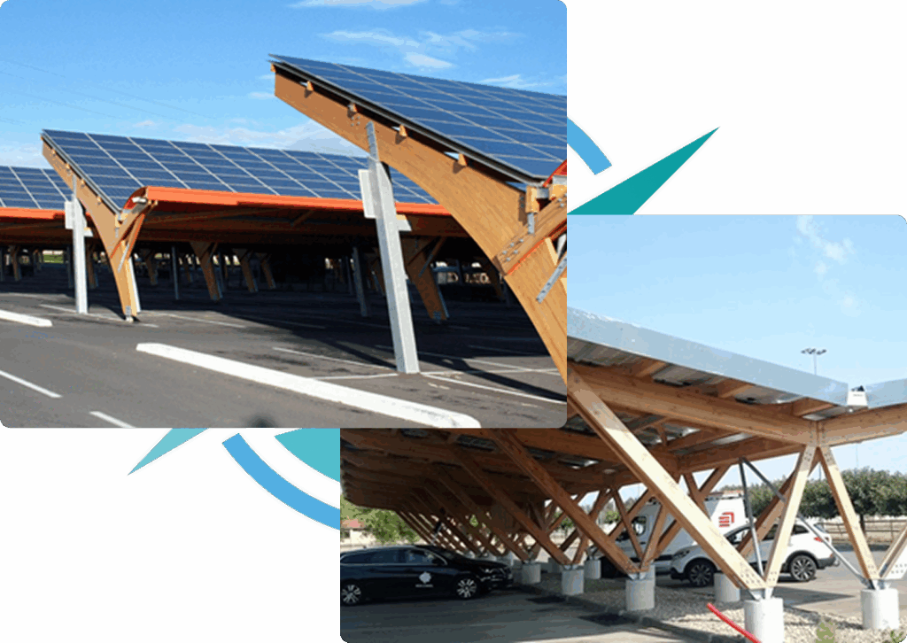 Pour une esthétique moins industrielle, pose de plusieurs carports couplés, complètement étanches